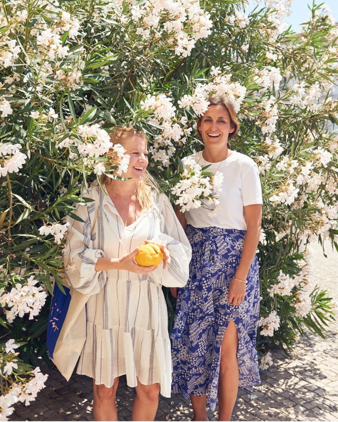 That’s exactly what Laura Castien (right) turned into a business. While on holiday in Portugal, she fell in love with the local stoneware, tracked down the artisans, and started bringing their pieces to Germany for pop-up stores. Together with her friend and business partner, Anna von Hellberg (left), she founded Motel à Mio. Back in 2016, their children were still tiny; today, the brand is a success story.
